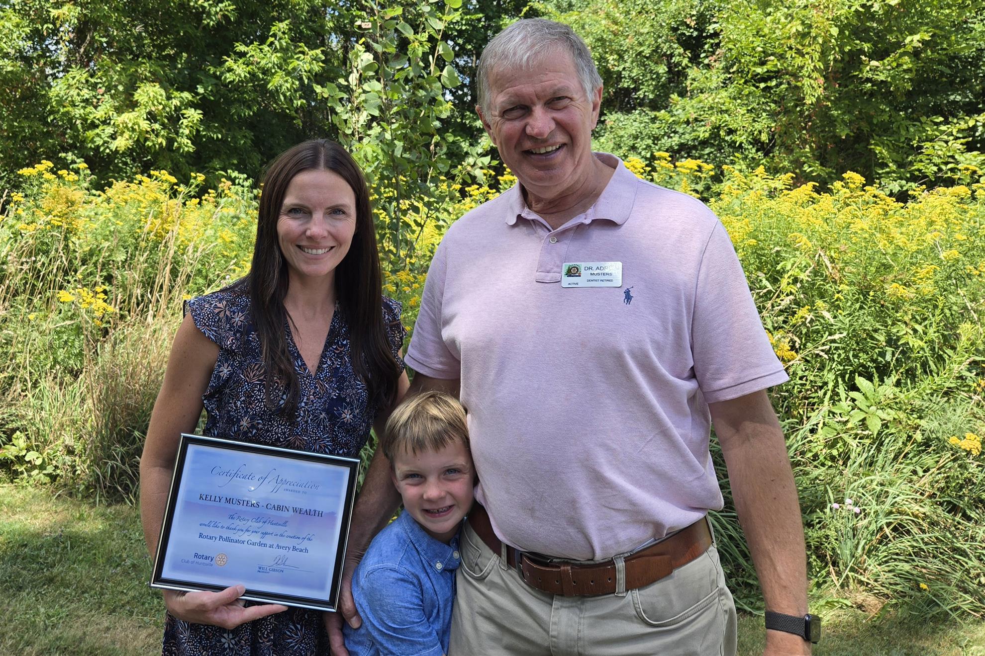 PEACE POLE: Rotary Peace Poles are beacons of hope for a more peaceful world, furthering Rotary’s vision. The pole erected in the new pollinator garden says “May Peace Prevail on Earth” in several languages. Rick Wearing initiated the idea of the peace poles and received help to install it from builder Peter Smith.